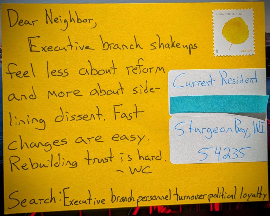 For residents of Wisconsin, this turnover and focus on political loyalty can have real consequences. Wisconsin depends on federal agencies for healthcare programs, agricultural support, and labor protections that impact both urban and rural communities. When agency leadership changes frequently or is filled by politically motivated staff, enforcement of programs can become inconsistent or biased, causing confusion and uneven access to resources. This instability may lead to gaps in services, delayed benefits, or less effective responses to local needs, whether in healthcare access, worker protections, or economic development. For average Wisconsinites trying to navigate public programs, these disruptions create frustrations and a sense that government is less responsive and more controlled by politics than by public service.
