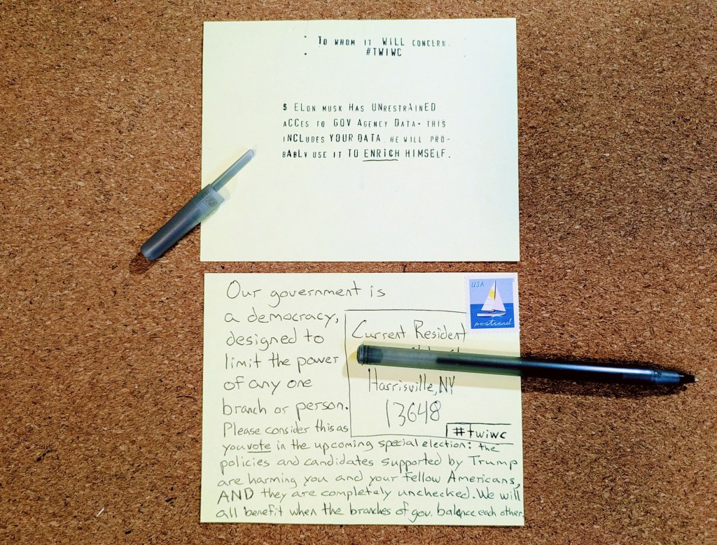 - Write your postcard. Share a short, anonymous, thoughtful message about the state of U.S. politics – keep it respectful.